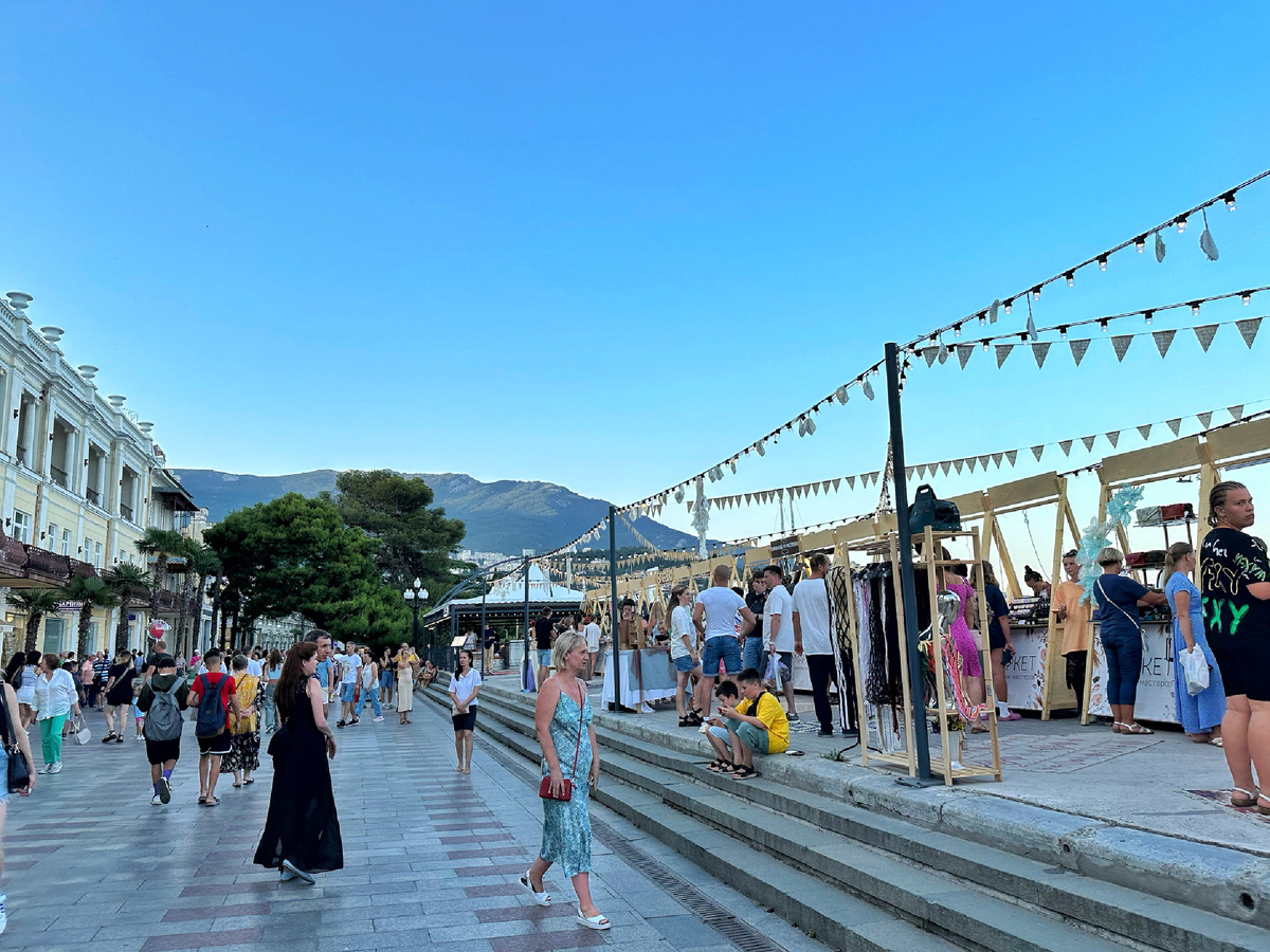 Хотели Алину разбудить пораньше с дневного сна, но она сама проснулась в 17:00 и больше уснуть не смогла. Выехали мы из дома в 18:10, народу у нас не так много, но пока всех соберешь. Приехали в Ялту и думали, что места не найдем, но нет, на Московской улице всегда есть свободные парковочные места, тут вопрос уже в их отдаленности от набережной. Алине сразу достали самокат и она помчала вперед, а мы бегом за ней. На самом деле быстрым шагом мы идем, чтобы быстрее дойти до набережной, а там уже можно немного расслабиться — машин нет, люди разбредаются и есть свободное пространство для маневров. Но вечером выходного дня людей много везде. На техническом пляже, под часовней, всегда многолюдно. На этом пляже не только загорают, но и купаются, хотя это запрещено. Данное место не предназначено для купания. Более того, люди умудряются в этом месте купать детей. Странно, что с 2023 года собирались штрафовать за купание в запрещенных местах, но пока я ни разу не видела, чтобы людей кто-то проси