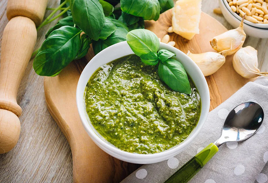 Название «песто» происходит от итальянского pestare — «давить, раздавливать». Как появился знаменитый соус и что можно приготовить с его добавлением — читайте в материале корреспондента агентства «Минск-Новости». Первые упоминания об этом соусе восходят к временам Римской империи. Поэт Вергилий описывал смесь оливкового масла, трав, кедровых орехов и сыра, именуя ее moretum. В XIII веке для консервации пищи использовали соус l’aggiadda, основу которого составлял чеснок. Его ценили мореплаватели, жившие на побережье Лигурии. Именно этот регион, расположенный на севере Италии, и его столица Генуя считаются местом, откуда рецепт песто начал распространяться по миру. В XIX столетии его в своей поваренной книге «Генуэзская кухня» опубликовал Джованни Батиста Ратто. Базилик и петрушку растирали вместе с голландским тертым сыром, пармезаном, чесноком и кедровыми орехами, а после добавляли оливковое масло. Что удивительно, за свою историю рецепт не претерпел глобальных изменений и сохранил аут