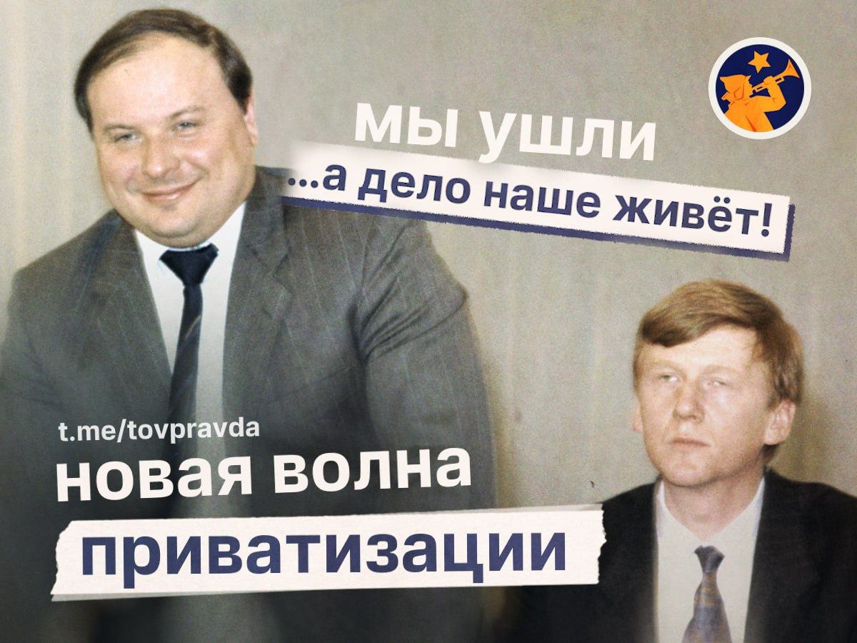 Всё чаще с прошлого года на слуху возникает, казалось бы, давно забытое слово «приватизация». Вот олигарх Дерипаска заявляет: всё, что государственное – не эффективно; называет приватизацию «лозунгом наших дней». Ему вторит глава Минфина Силуанов: «нужно, с одной стороны, снижать долю государственного сектора, с другой стороны – денежку получать». План приватизации вплоть до 2026 года был утвержден ещё пять лет назад: каждый год надо продавать на сумму в 1,2 млрд рублей. В прошлом году план решили перевыполнить – и вместо намеченных 1,8 млрд распродали государственной собственности в 16 раз больше: на 29 млрд рублей. Этого им оказалось мало – видимо, куда-то торопятся. В марте господин Силуанов потребовал добиться 100-миллиардной приватизации – неслучайно его заместитель за полгода до этого уже говорил о планах создать специальный «маркетплейс», по-русски – «рынок», для торговли народным добром. Также ведомство Силуанова составило специальный список из 30 компаний, содержание которого