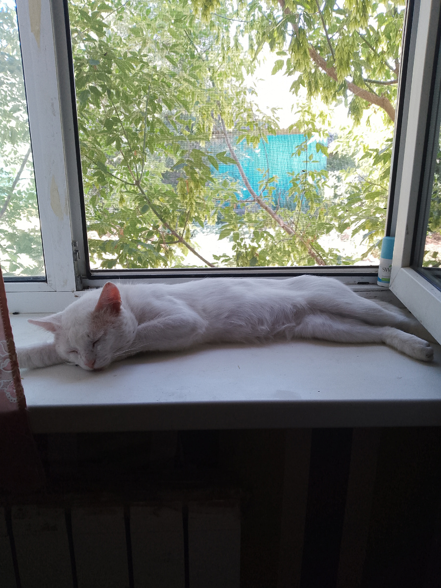 Жара стоит у нас невыносимая. Только после захода солнца становится прохладнее, ветерок бывает, прямо лепота. А ночью опять душно и жарко почему -то. Кот мой сегодня целый день не выходил на улицу, даже не просился, что на него совсем не похоже. Видно в квартире ему прохладнее, я его еще и водой поливаю немного, он рад, даже не сопротивляется, наоборот, мурлыкать начинает. Спал весь день, бедный. На окне,на ветерке. Только к ночи ушел гулять. А вчера иду по улице и вижу картину - собака лежит в луже, там и воды то почти нет Но ей хватило, довольная такая лежит, охлаждается. А как вы переносите жару? Принесла ли она какие-то проблемы?