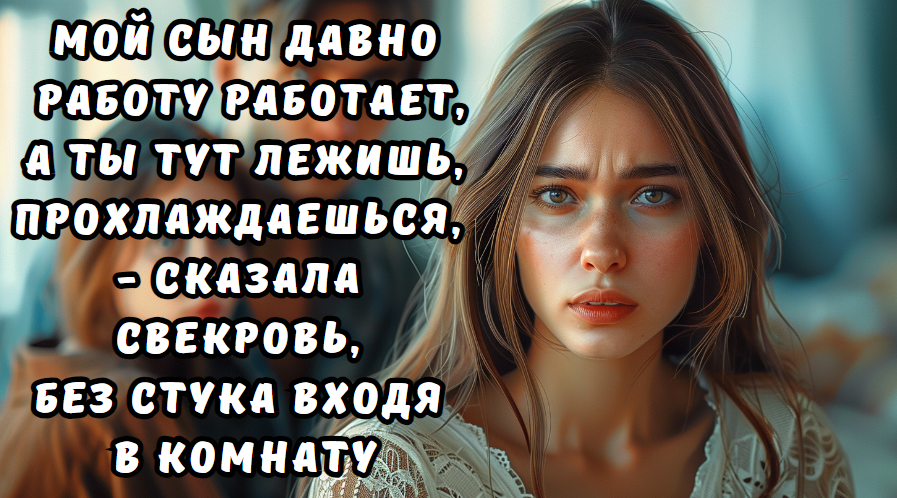- Мой сын работу давно работает, а тут спишь прохлаждаешься, - первое, что сказала свекровь.