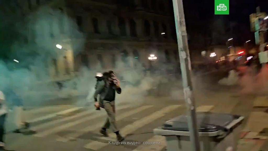 [ Смотреть видео на сайте НТВ ] В Париже полиция применила слезоточивый газ для разгона устроивших стычки радикалов. В некоторых других французских городах связанные с выборами манифестации и митинги также переросли в беспорядки. В Париже на площади Республики в воскресенье вечером собрались сторонники левых политических партий, чтобы дождаться результатов объявления предварительных итогов второго тура досрочных парламентских выборов. Полиция стянула к центру города водометы и спецтехнику. Информацию о том, что, по предварительным данным, лидирует «Новый народный фронт», собравшиеся встретили ликованием. Манифестация протекла мирно, пока не появились группы молодых людей, которые начали забрасывать полицейских фейерверками, камнями и бутылками, поджигать велосипеды и мусор. Полиция применила слезоточивый газ. В соцсетях появились многочисленные кадры с охваченных беспорядками улиц из разных городов страны. Группы молодых людей крушат витрины кафе. В Лионе манифестанты используют против