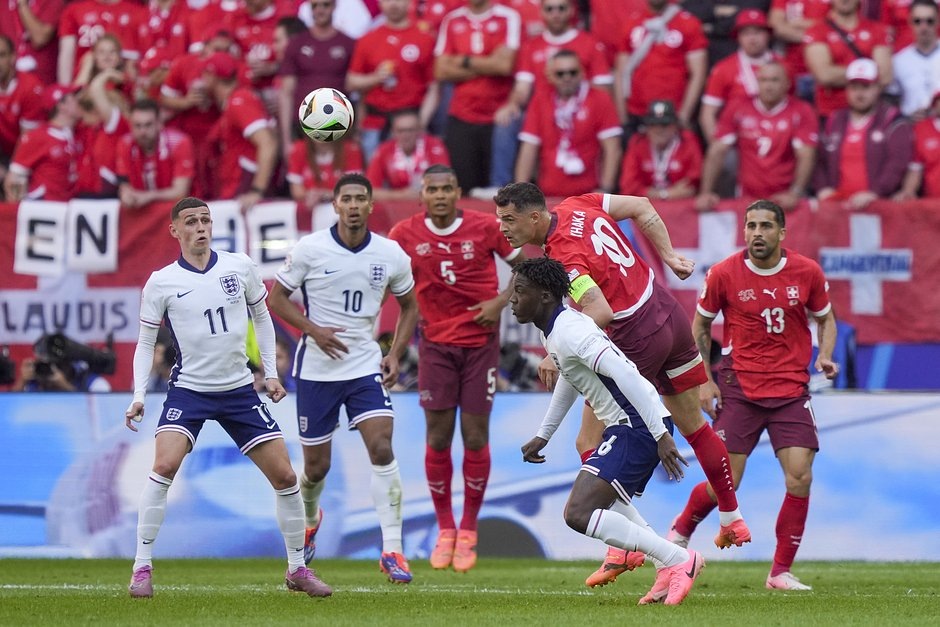 В третьем четвертьфинале лицом к лицу сошлись Англия и Швейцария, которые при одинаковом итоге очень по-разному провели свои матчи первого раунда плей-офф. Англия 120 минут мучилась со словаками, пропустила первой, отыгралась только на 9-й добавленной минуте благодаря "ножницам" Биллингема, и в овертайме забила решающий гол. А Швейцария просто деклассировала итальянцев, победив уверенно и без сомнений в итоговом превосходстве.
