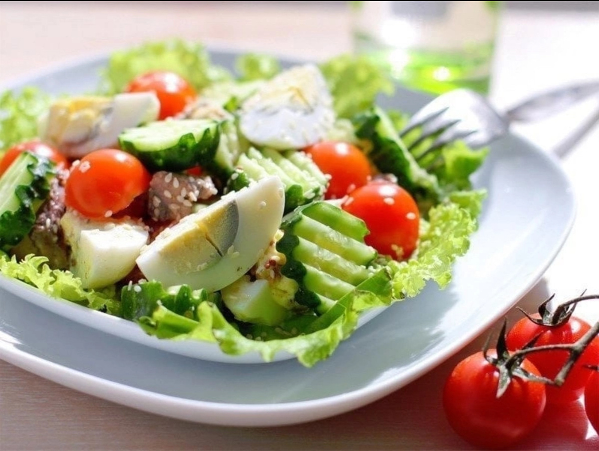 1. Консервированный тунец + яйцо + огурец + лук репчатый + заправка (оливковое масло и лимонный сок) 2. Куриная грудка _ огурец + помидор + зелень + оливковое масло 3. Куриная грудка + листовой салат + огурец + сыр + заправка (лимонный сок, оливковое масло и зерновая горчица) 4. Консервированный тунец + отварной бурый рис + кукуруза консервированная + огурец 5. Креветки + зелёное яблоко + огурец + зелень 6. Кальмары + яйцо + шпинат + помидоры + йогурт