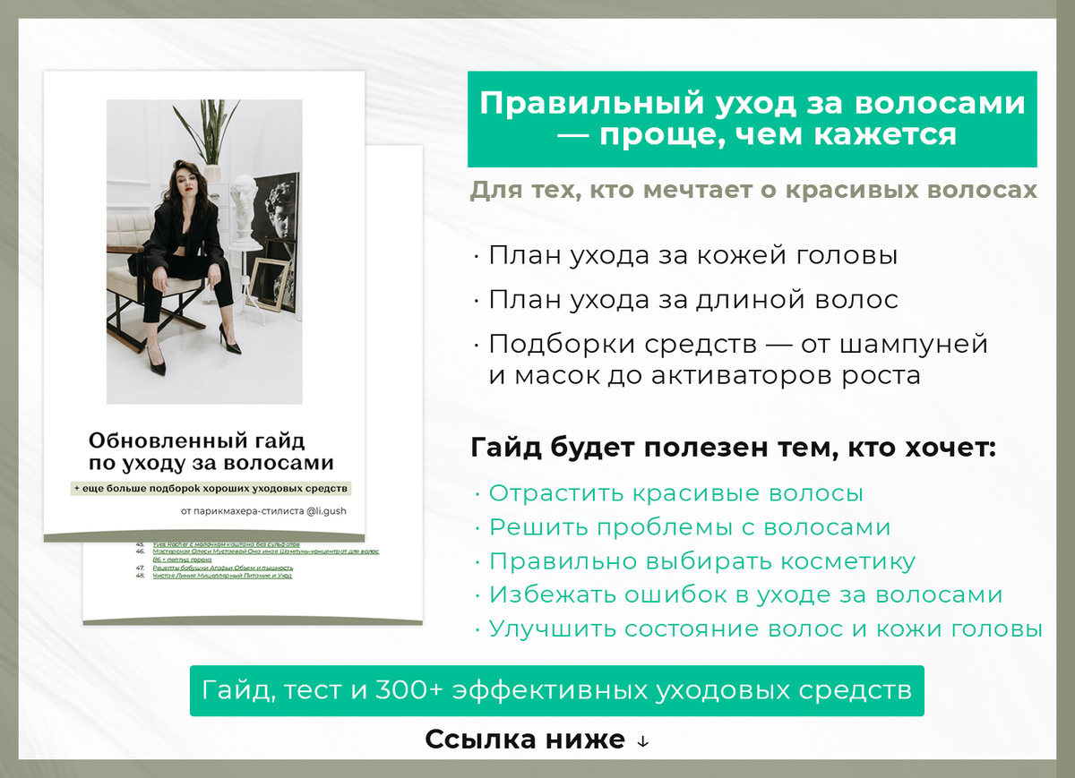 Давайте знакомиться! Меня зовут Лиля, я парикмахер с 16-летним опытом. Я помогла отрастить волосы сотням девушек. Всегда хотела делиться своим опытом работы с клиентами и линейками ухода за волосами. В своем Телеграм-канале (ссылка в конце статьи) я рассказываю о правильном уходе, делаю честные разборы составов косметики и делюсь практическими рекомендациями, которые действительно работают. Подписывайтесь! ------- Я написала 🔗 пошаговое руководство по уходу за волосами, которое поможет разобраться в теме самостоятельно. В нем — куча подборок средств на любой вкус и кошелек, чтобы сэкономить ваши время и деньги. Пора уже перестать бессмысленно экспериментировать с продуктами, которые не дают результата. Если хочется научиться ухаживать за волосами грамотно и эффективно — переходите по ссылке, и вся информация о волосах будет прямо у вас в телефоне уже сегодня. Здравствуйте, я Лиля, парикмахер с 1