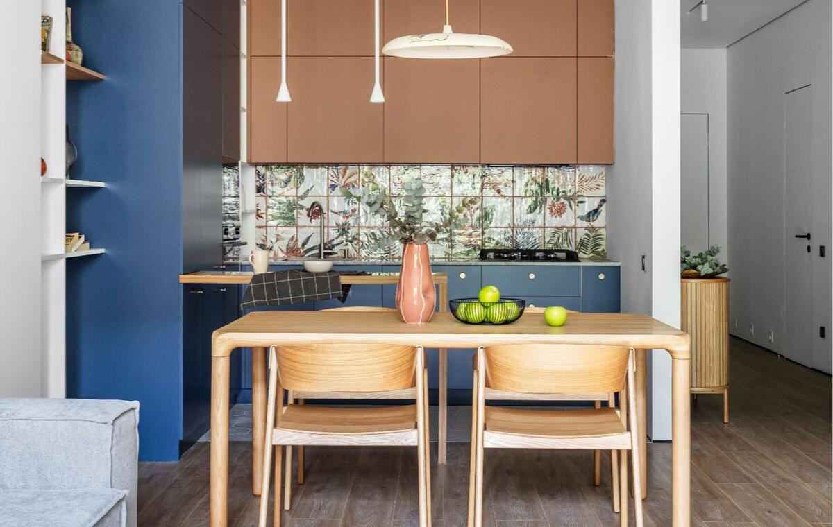 Отправной точкой этого интерьера стал традиционный грузинский ковер Место: Грузия, Тбилиси Метраж: 85 кв. м Год реализации: 2024 Cанузлы: 2 Высота потолков: 3 м Дизайн: Студия MATERIAL Фото: Михаил Сердюков Заказчик проекта — молодая семья с грузинскими корнями, которая приобрела первую квартиру в Тбилиси. Перед Владимиром Матушкиным из студии Material стояла задача спроектировать яркий и в то же время минималистичный интерьер, но с использованием этнических мотивов. Заказчики хотели получить современный и функциональный интерьер, чтобы в нем прослеживался дух, гений места. В квартире есть большая кухня-гостиная с удобным гарнитуром, обеденной зоной и гостиной с ТВ, а также две изолированные спальни. Изначально по плану застройщика в квартире была спроектирована вместительная гардеробная комната, что позволило решить основную проблему хранения сезонных вещей. Также в прихожей и спальне были спроектированы встроенные шкафы и стеллажи на заказ. Санузлы были увеличены за счет коридора. Ку