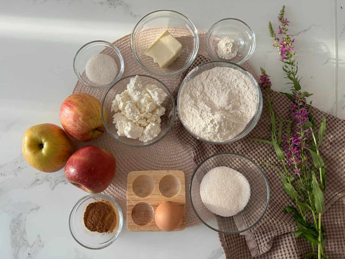 Этот пирог мы делали с детьми уже несколько раз! Он полюбился мне за простоту, быстроту и приятное сочетание яблок и творога, а моим дочкам больше всего нравится заплетать косичку на пироге. А еще он эстетично выглядит на столе, когда приходят гости. Вся подготовительная работа перед запеканием занимает 30 минут (мы специально засекали с детьми), и в духовке потом выпекается примерно столько же, так что если хотите красивый, вкусный и быстрый пирог, то этот рецепт подойдет идеально. У нас есть видеоролик, в котором мы готовим по этому рецептами с дочками! Написать этот рецепт пошагово статьей меня вдохновили комментарии с просьбами рецепта! Спасибо за ваши теплые отклики. Итак, список ингредиентов. Для творожного теста: творог 180 г сахар 80 г масло 50 г 1 яйцо мука 200 г разрыхлитель 1 ч. л. Для начинки: 3 яблока корица 2 ч. л. сахар 1 ложка шаг 1 Берем творог, добавляем яйцо, сахар и хорошо мешаем все миксером. шаг 2 Добавляем мягкое сливочное масло и миксером хорошо все перемешиваем