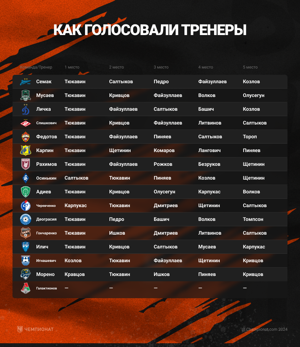 Клуб сезона 2023/2024: "Динамо" Позиция: нападающий Голы: 164 Безоговорочно лучший. Впервые он получил эту награду с таким большим отрывом. Его шедевральный гол пяткой в ворота "Сочи" запомнится надолго. Без такого классного нападающего "Динамо" не претендовало бы на чемпионство. Физические данные Чукавина, его умение бить и скорость несомненны, но самое главное - он никогда не зацикливается на ошибках. Не попал? Не беда, забьет в следующий раз. И он забил - уже за Россию. За кого бы вы проголосовали из этих 15?