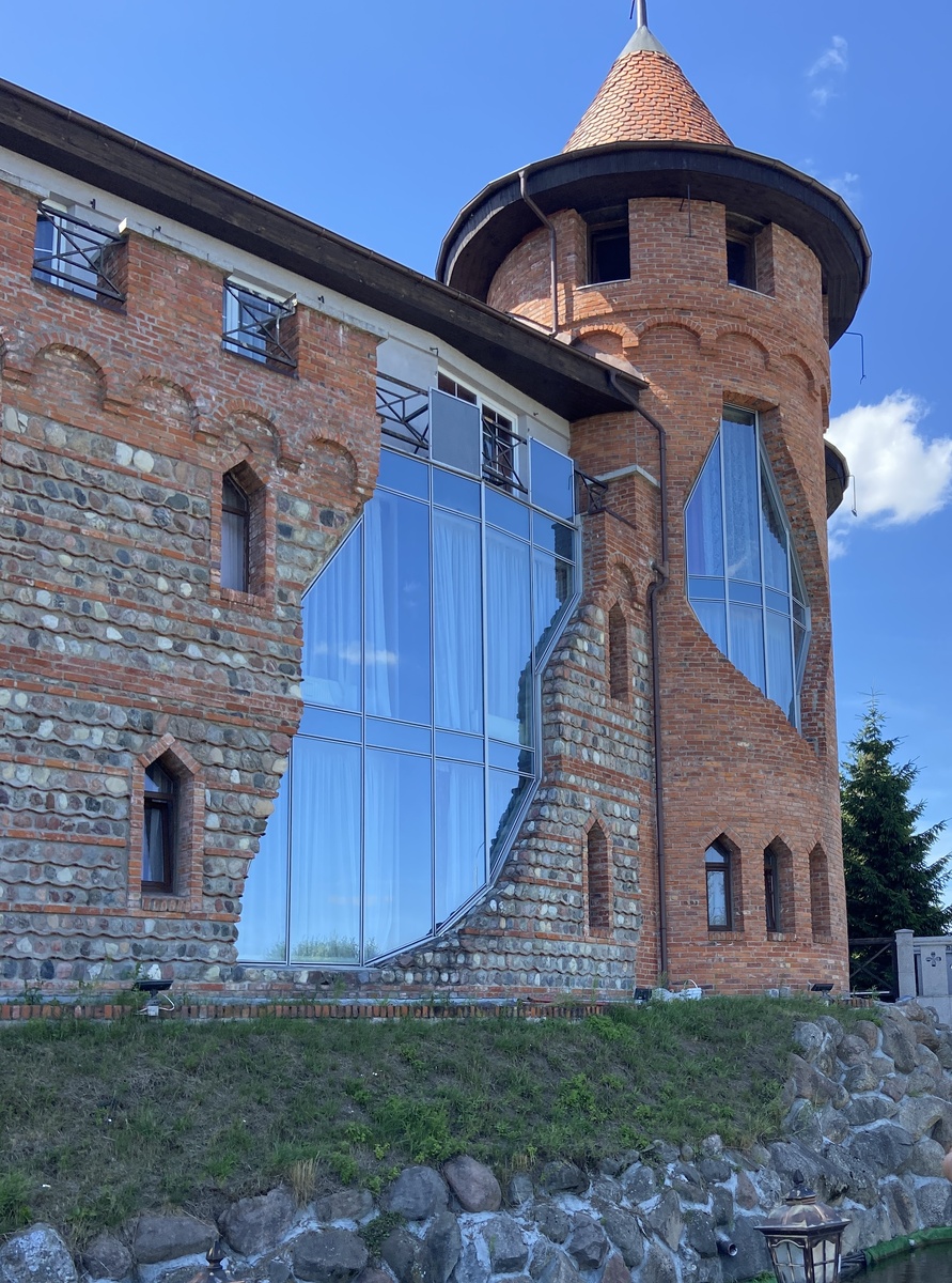 Несмотря на то, что Калининград к этому отелю не близко, море далеко, а рядом только руины замка Шаакен и частная сыроварня «Шаакендорф», этот отель пользуется серьезным спросом. Находится он в посёлке Орловка Калининградской области. Все потому, что построен он в виде настоящего средневекового замка. Причём, стоит он вовсе не на месте бывшего замка, как можно было бы предположить, нет, это совершенно новое строение, которое придумали и воплотили два молодых предпринимателя. Хотя строился он по чертежам, как точная копия крепости Тевтонского ордена. Строение окружено настоящим рвом с водой, имеет подъемный механизм перекидного моста-все как в настоящем замке. Внутри мы не были, нас привезли сюда по пути с экскурсии в замок Шаакен специально для фотосессии. Место шикарное, конечно. С ним уже связано много легенд, герои которых отражены в элементах украшения фасада замка, например, легенда о драконе, которого выловили рыбаки. История классная, но является самой настоящей сказкой, прич