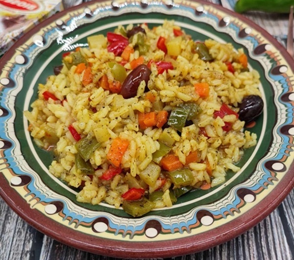 Рис с овощами — это всегда вкусно, а летом — вкусно вдвойне: свежие разнообразные овощи делают этот гарнир действительно замечательным. Я использую два вида перца лук, морковь, оливки, кабачки. Но можно добавлять и другие овощи, если вам нравится. Рецепт называется «Рис по-монастырски», он настолько вкусный, что к нему не нужно мяса — он хорош и сам по себе. Но, конечно, его можно подавать как гарнир к котлетам, сосисками или куриным окорочкам. Итак, если вам хочется съесть что-нибудь постное и лёгкое, полное летних овощей и ароматов — тогда выбирайте приготовление риса по-монастырски в духовке. Овощи обогащают вкус риса, а специи делают его неповторимым. Я использовала рисовую приправу из трав и специй, которая делает рис по-настоящему ароматным и сбалансированным по вкусу. А если вы хотите получить рассыпчатый, не слипшийся рис, читайте рецепт ниже. Первым делом включаем духовку, а затем моем и нарезаем овощи мелкими кубиками. Оливки без косточки не режу — для красоты, но можно разре