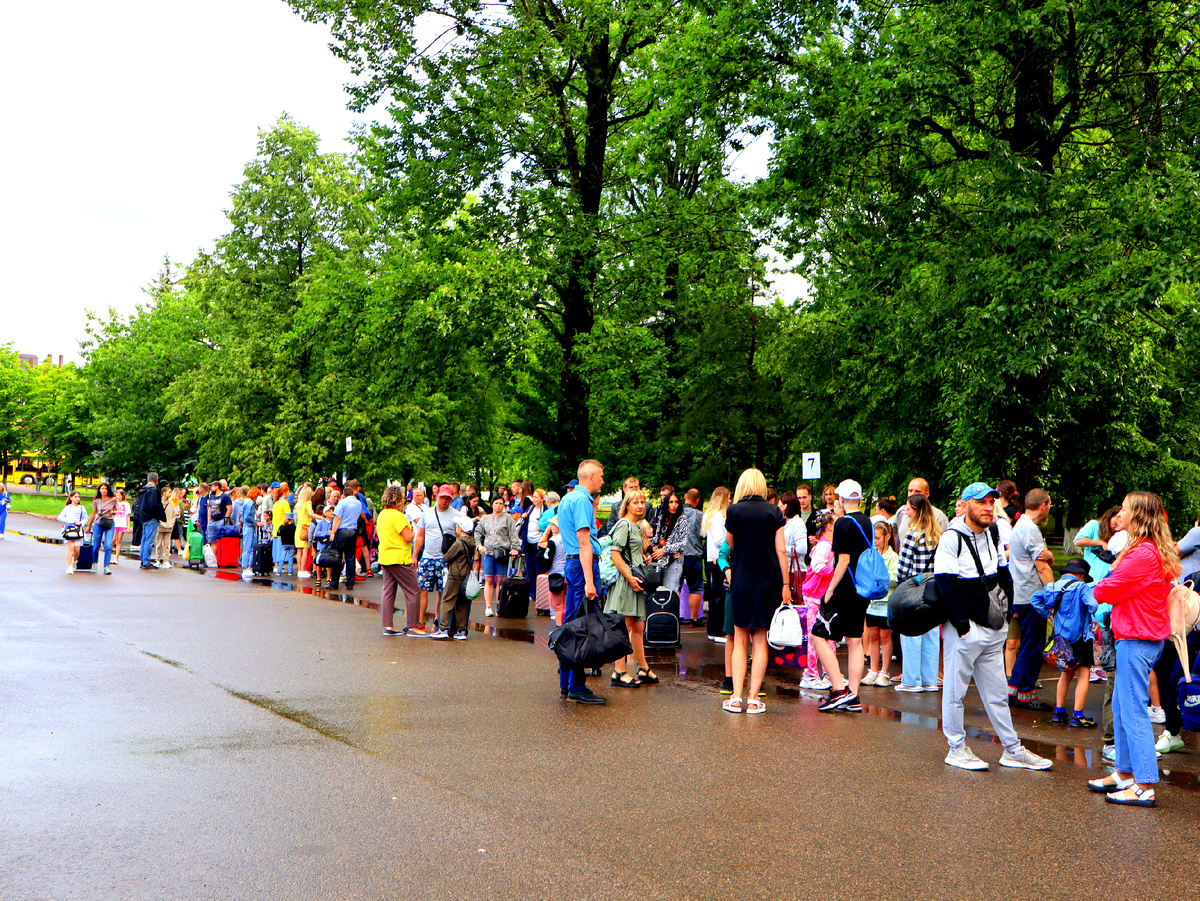 Несмотря на пасмурную погоду, дети заводчан бодры и веселы, ведь их ждет отдых в оздоровительном лагере «Теремок».