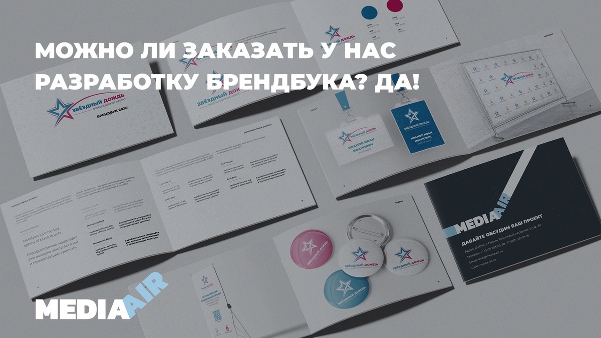 Наше агентство MEDIA AIR предлагает полный спектр услуг по созданию фирменного стиля и брендбука. Обращайтесь!