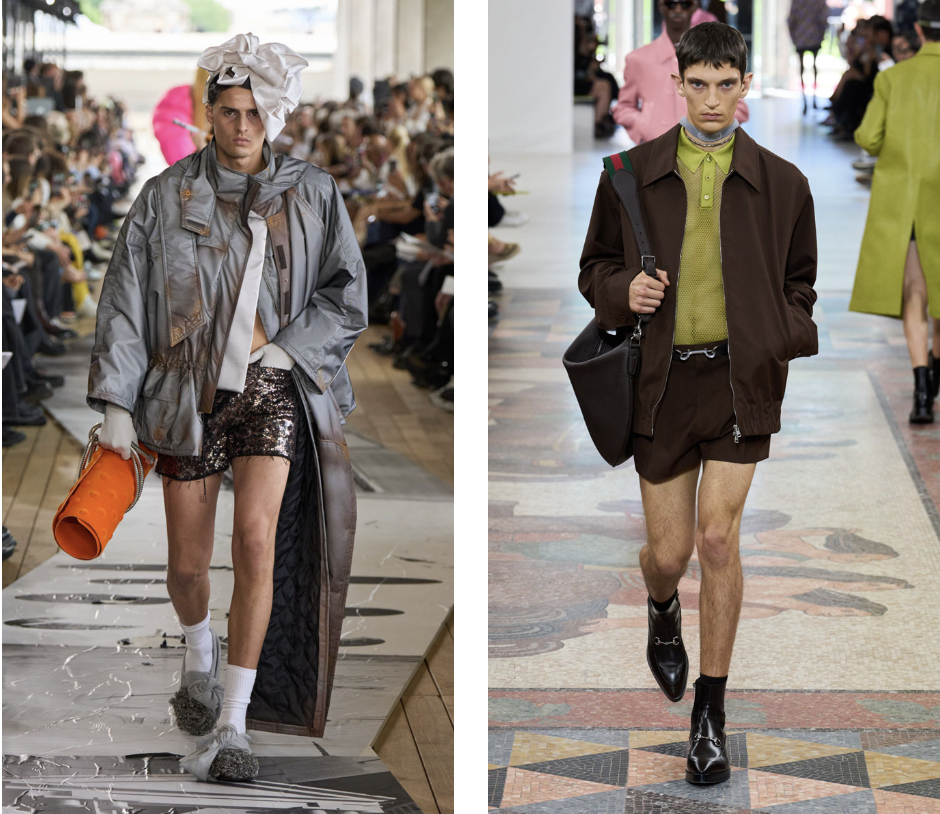 Тенденция превращения мужских брюк в элегантные шорты наметилась еще в 2023 году. Тогда показы весна-лето прямо-таки пестрили шортами, открывая перед мужчинами всего мира невиданные ранее перспективы — чувствовать себя комфортно даже в самую сильную жару. С того времени трент не потерял своей актуальности и все больше прогрессирует — шорты стали еще короче. Радоваться этому или огорчаться — пока вопрос спорный. Количество критиков “укороченного тренда” мало чем уступает числу его поклонников. Последние, впрочем, не чувствуют никакого ущемления — трендовые модели мужских шорт уже доступны в продаже, в том числе и в масс-маркете. Настоящий всплеск интереса к трансформации фасонов мужских шорт последовал после модных показов сезона весна-лето 2025. В центр внимания папарацци попал актер Пол Мескал, известный по своим ролям в фильмах “Нормальные люди” и грядущем “Гладиатор 2”. Ирландский модник известен своей благосклонностью к шортам в пижамном стиле — именно они составляют основу его аут