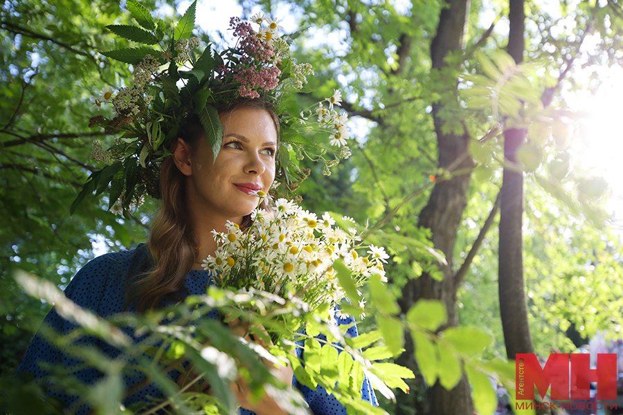 Настоящая купальская магия царила поздним вечером 7 июля в Центральном ботаническом саду НАН Беларуси. Исконно национальный праздник порадовал гостей выступлением фолк-групп, музыканта Ивана Кирчука, обрядовыми играми, мастер-классами по гончарному ремеслу, плетению венков и многим другим, сообщает корреспондент агентства «Минск-Новости». В этот раз организаторы мероприятия подготовили целых пять фотозон для пришедших на купальские гуляния минчан и гостей столицы. Ровно столько же на площадке было установлено столиков, за которыми проходят мастер-классы по плетению венков. Готовые символы праздника из колосьев или виноградной лозы покупали те, кто не любит кропотливую работу. Крайне много на мероприятии ремесленников. Они продавали не только бижутерию, вязанные игрушки, ремни, платки, но и магниты с белорусской символикой (мельница, зубр и т. д.), деревянные игрушечные мечи, обработанные, авторски оформленные срезы полена (некоторые с изображением домового), сосуды для воды на старинны