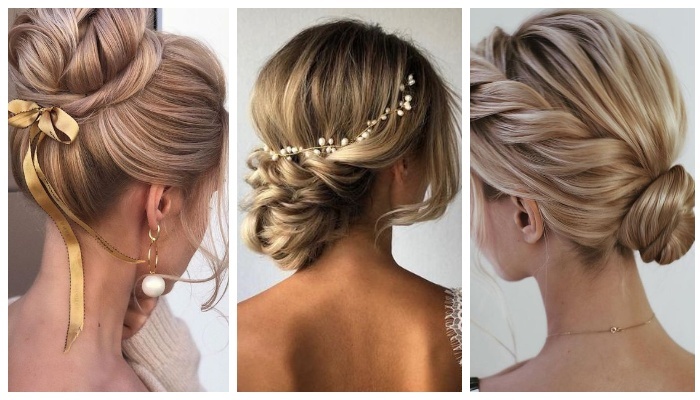 Текстурные пучки придают более праздничный вид: для этого можно слегка накрутить тонкие пряди, затем собрать их в низкий пучок, не расчесывая. Чтобы прическа была более аккуратной, пряди можно слегка скрутить в жгуты. Использование легкого лака для волос и невидимок поможет закрепить укладку.