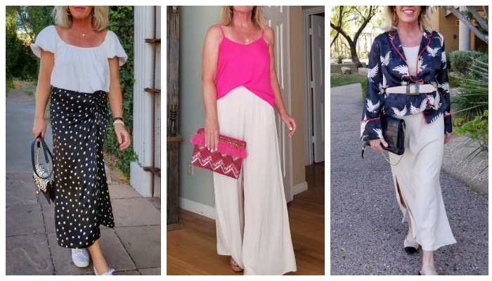 Современные женщины, которые ценят внимание окружающих, будут в восторге от ярких летних образов. Стилисты создали идеальные наряды, которые обязательно понравятся модницам в этом сезоне. Следите за нашими рекомендациями, если хотите выделиться этим летом. Стильный образ в классическом стиле с ярко-зелеными укороченными брюками, полосатым светлым пиджаком, белоснежной футболкой, белыми туфлями на каблуке и объемной сумкой в виде "облака". Классический серый костюм + полосатая бело-голубая рубашка + громоздкие кроссовки с серебряными вставками + мини голубая сумка с короткой ручкой — стильный летний look для особенных модниц. Яркие льняные костюмы с брюками и рубашками — маст хэв летнего сезона. В таком наряде будет удобно, как на курорте, так и в городских джунглях. Комбинировать пестрые брючные костюмы гуру моды рекомендуют с кроссовками, а также лаконичными кожаными сумками. Попробуйте составить этим летом выразительный кэжуал look с платьем макси в цветочек, массивными кроссовками,