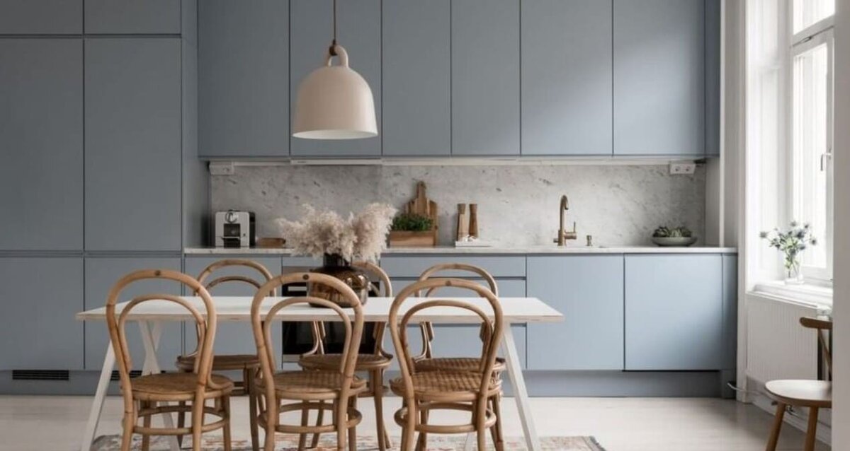 Светлые оттенки: Белая кухня — это классика скандинавского стиля. Белый цвет визуально увеличивает пространство, что особенно актуально для небольших помещений и маленькой квартиры. Однако, кроме белого, в интерьере часто используются светлые оттенки серого, голубого и бежевого.