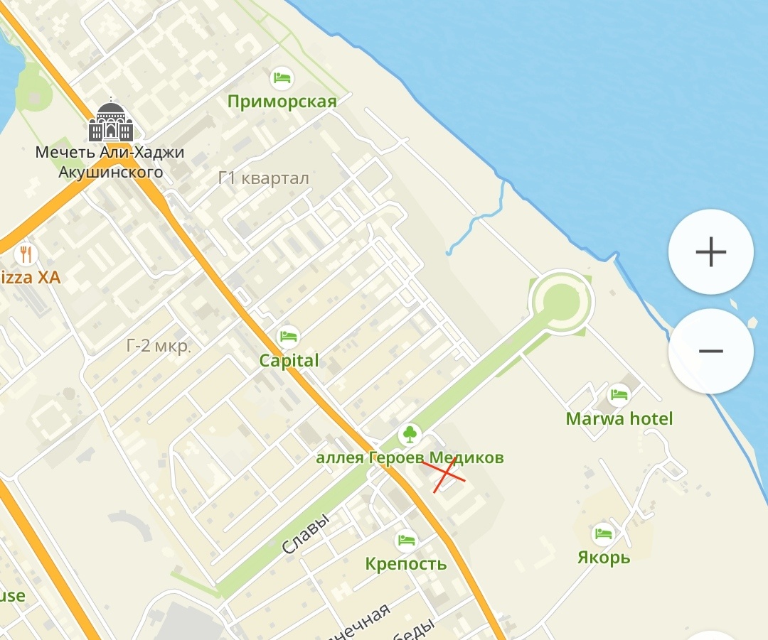 Мы там, правда, не были. Проехав один раз к квартире почти через всю Махачкалу, решили, что очень не хочется ещё и на пляж кататься. И пошли на тот, что был недалеко от нашего дома - на карте его можно найти, ориентируясь на жилой комплекс "Лазурный берег".