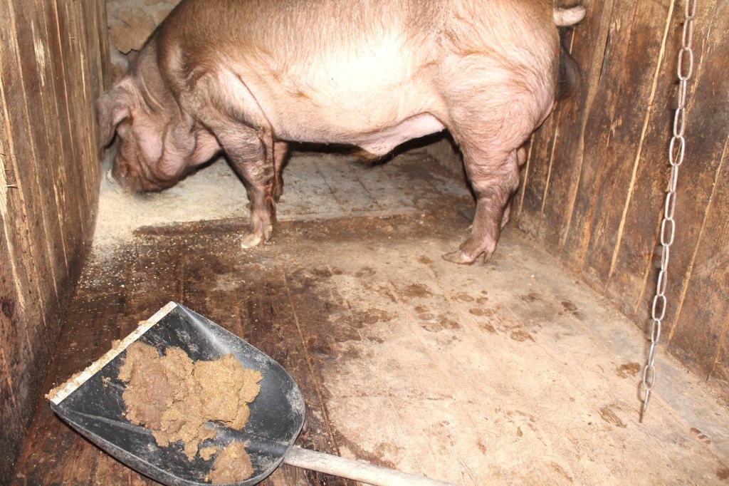 Если в хозяйстве содержится 1-2 свиньи, проблема утилизации навоза не стоит так остро. Несколько лопат органики в день несложно прикрыть травой или забросать землей. Так и запаха будет меньше, и компост получится более качественным.