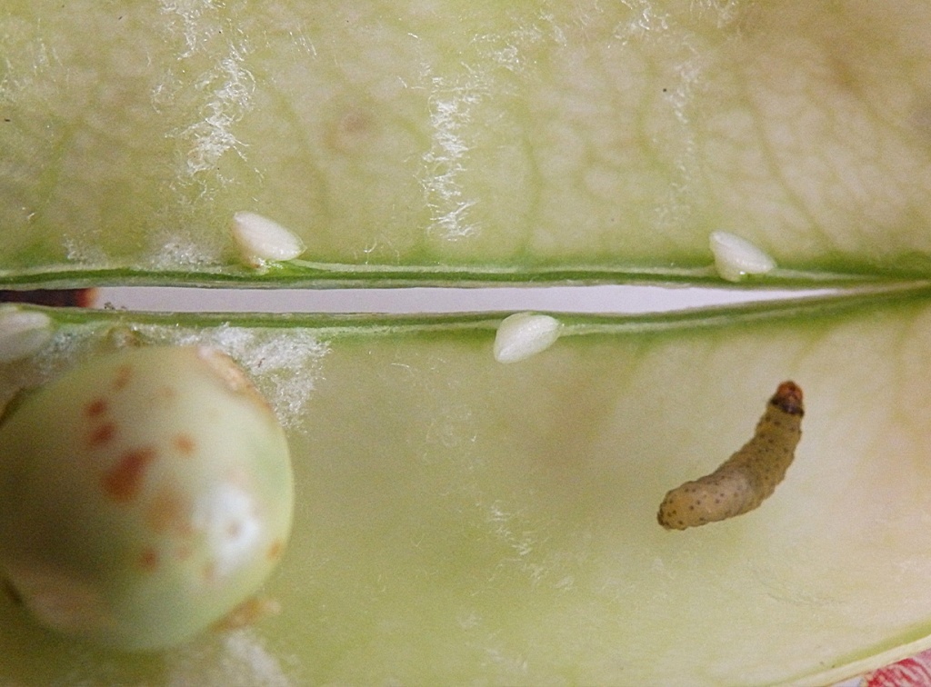 Это маленькая бабочка коричнево-серого цвета с размахом крыльев 1,5 см. Самки откладывают яйца на верхних листьях, бутонах и завязях. Период яйцекладки может длиться до 1 месяца, одна самка способна отложить до 300 яиц. Через пару недель на свет появляются гусеницы. Они прогрызают стручки и начинают поедать их содержимое. Ближе к концу лета, когда растения начинают увядать и высыхать, гусеницы выходят из своих укрытий и отправляются в почву на зимовку.