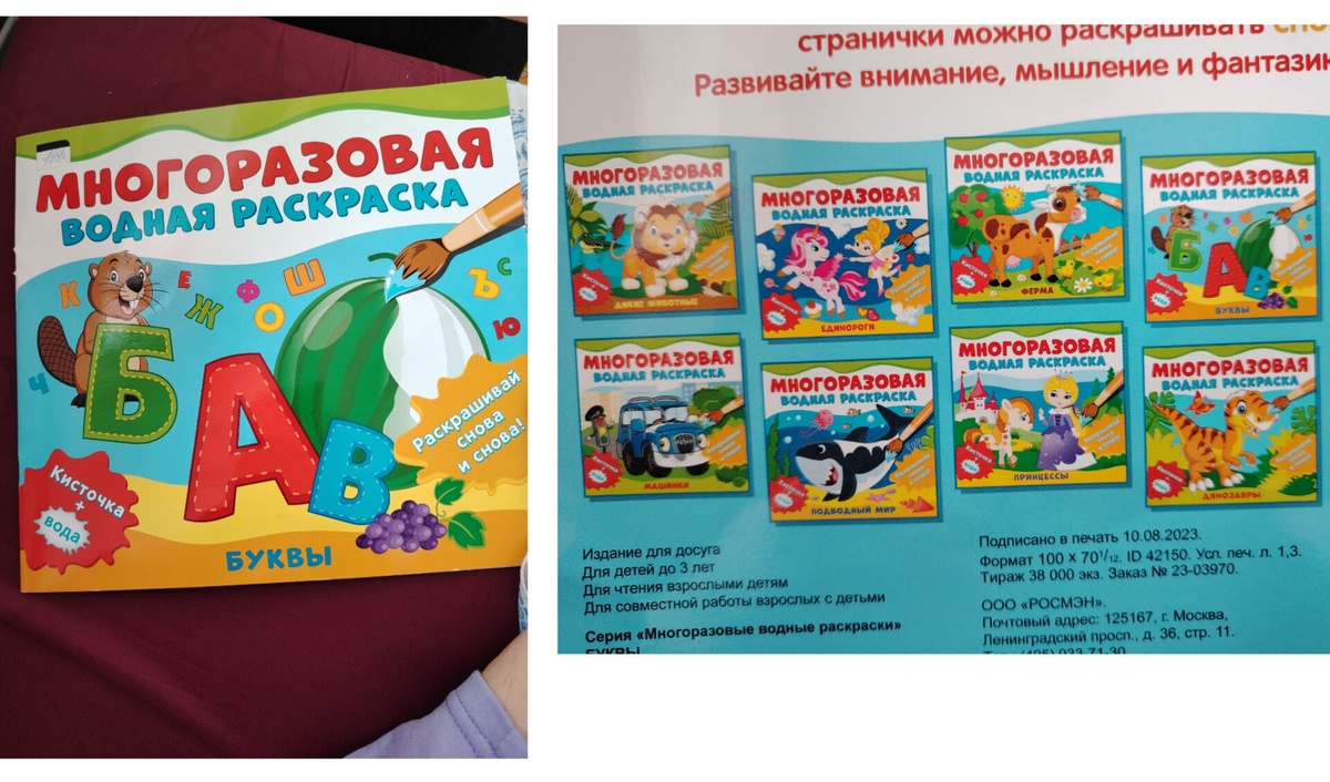 Первое, что помогает нам оставаться на плаву и на позитиве - это ваша поддержка. Спасибо всем огромное за добрые слова в комментариях ❤️ Лежать в больнице с ребёнком и правда не просто, нужно запастись терпением и... Большим количеством развивашек. Сегодня хотим посвятить им статью, покажем всё, что я брала с собой, чтобы занять дочку. Многоразовая водная раскраска - наша любовь! У нас из этой серии три штуки: принцессы, динозавры и вот теперь алфавит. Цена такой прелести - 149 р. Дочка любит кисточкой рисовать, но и "фломастер" водный годится, его ниже покажу. Кисточки в больницу не брала, естественно. Один минус - Люда любит карябать слой, видимо, надо ей лотерею купить 😅 Такую раскраску (на фото ниже) мама купила рублей за 300 в обычном магазине игрушек. Листы плотные, Люда очень любит рисовать самолётик и трамвай особенно. "Фломастер в комплекте,крышка уже потерялась. Каково было моё удивление, когда я увидела похожую раскраску рублей за 50 в фиксе. Смешная цена, особенно есл