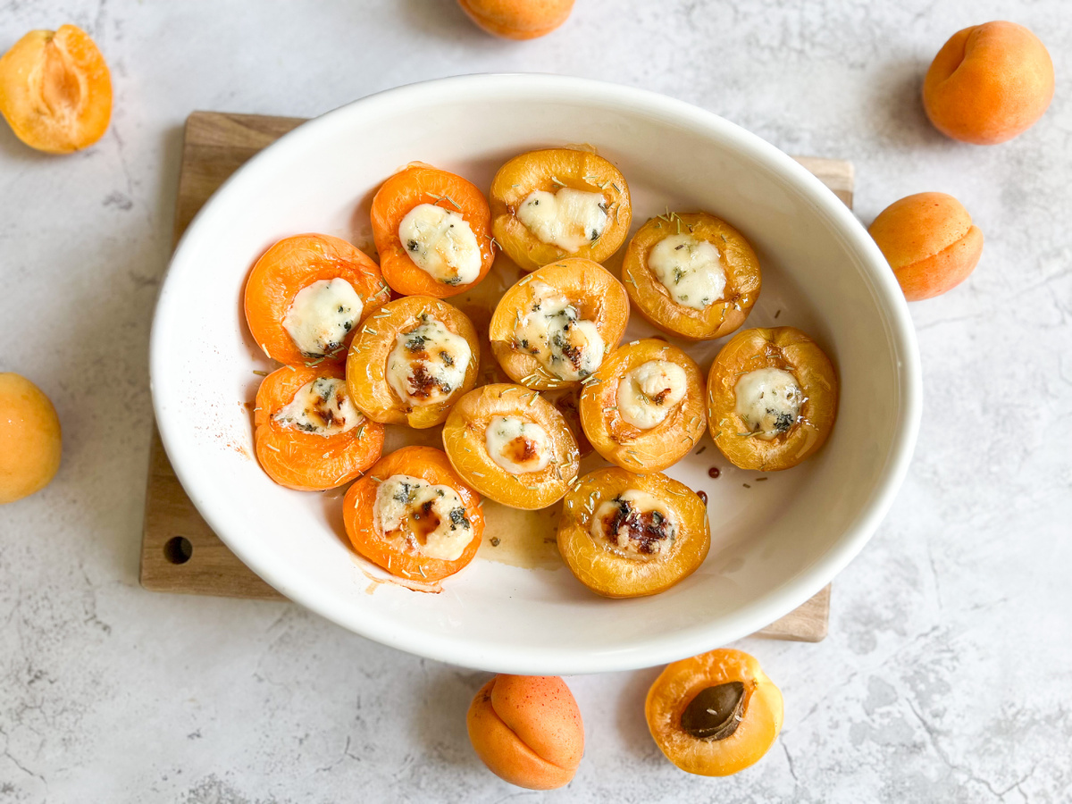 И я сразу вспомнила об этом шикарном рецепте. Абрикосы с голубым сыром в духовке! Уже даже звучит вкусно, правда?