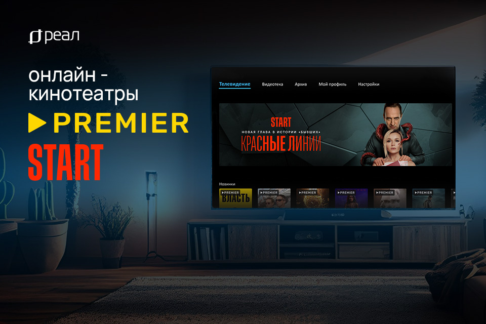 Лето в самом разгаре! Настало время порадовать себя и своих близких доступом к популярным онлайн-кинотеатрам START или PREMIER и смотреть любимые фильмы, сериалы и телепередачи вместе. Подключайте в личном кабинете РЕАЛ онлайн-кинотеатры START или PREMIER и наслаждайтесь просмотром. Подключив онлайн-кинотеатр PREMIER вы получите: Подключив онлайн-кинотеатр START вы получите: Уточнить информацию о тарифах: