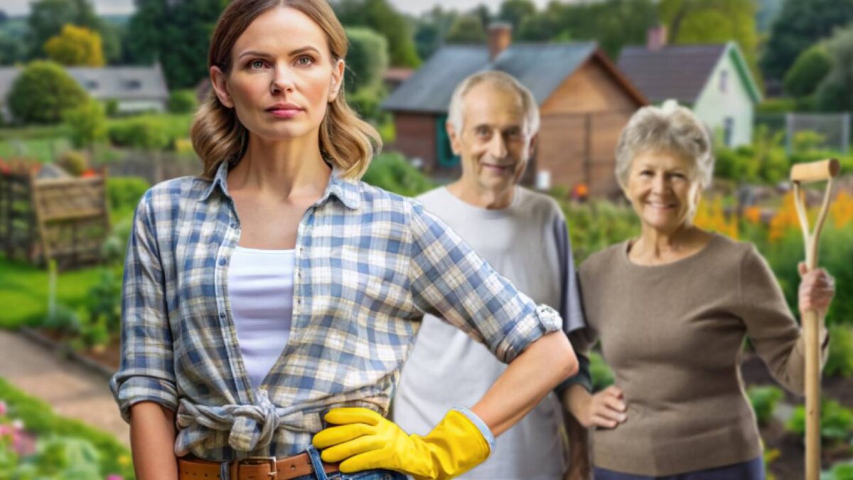 Леонид и Надежда радостно приветствовали толпу, а затем заметили стоявшую посреди их огорода Татьяну.