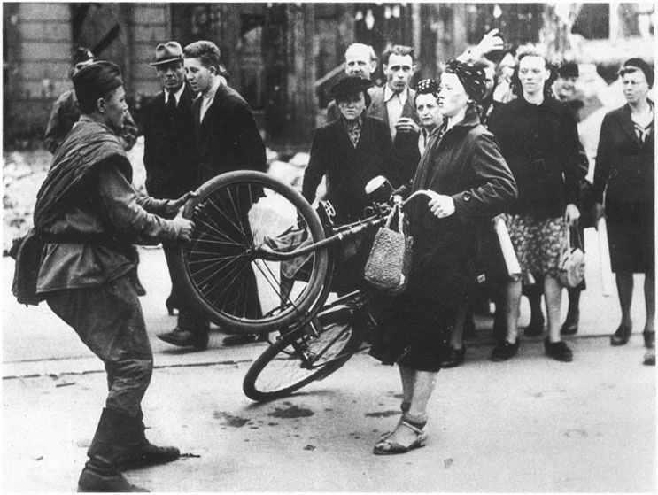 Всем известное фото борьбы за велосипед. Советский солдат тянет его с одной стороны (причем почему-то за колесо), а с другой – жительница Берлина. Этот снимок стал особенно популярен на Западе, где использовался в целях антисоветской пропаганды. Мол, посмотрите, какой ужасный воин Красной армии отбирает транспортное средство у мирной жительницы. Но так ли это на самом деле? Соответствует ли ситуация на фотографии тому, что нам долгое время преподносят?
