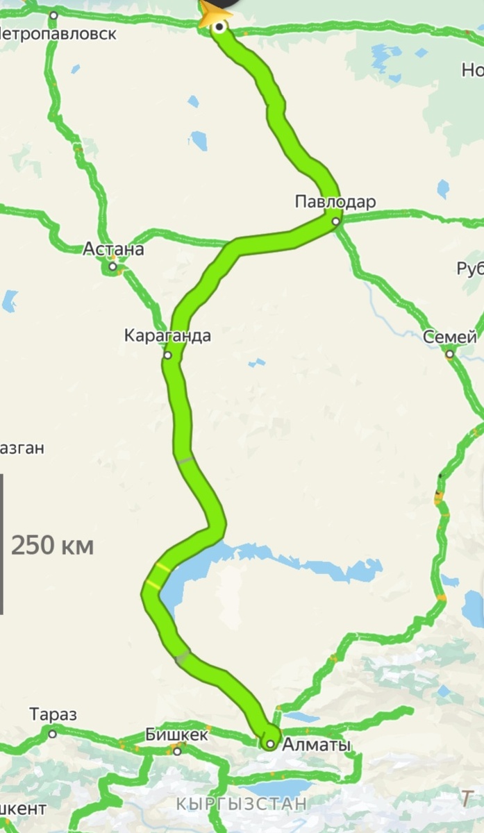 Каждый год в новом летнем автопутешествии мне хочется превзойти самое себя. И кажется, в этом году дело к тому идёт. Итак, мы уже 6 раз проскакали через границу, посетили три страны (две из них для нас новые), и последний на данный момент отрезок пути выглядел так: Как долго я хотела попасть в Алматы, даже больше, чем в нынешнюю столицу! И, добравшись сюда, мы не смогли посмотреть город - нам просто не хватило времени... Решаем отложить до лучших времен, чтобы не скакать по верхам, и катимся только на канатке в Медеу. Встречаем на ней закат. Она долгая, а я ужас как боюсь канатных дорог. Но что ж, страхи надо преодолевать. Утром выезжаем из Алматы в сторону России. Дорога какое-то время настолько отличная, что можно ехать... 140. Но это недолго. Потом она становится обычной двухполоской, изредка перемежающейся более хорошими участками. Ещё в Алматы на светофоре познакомились с казахстанским автопутешественником Иваном - он собирается ехать в Монголию. Казахстанцы, кстати, многие любят