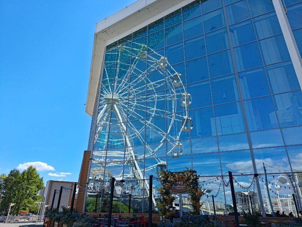 Ульяновск без музеев. Понедельник — головная боль в поездках: в музеях и ТИЦ выходной. Вот и сейчас понедельник застал нас в Ульяновске. Можно было пойти наслаждаться солнцем и Волгой, ширина которой здесь составляет 3 километра. Но солнца нам уже хватило с лихвой. Вот и решили прогуляться по улицам. Начало вполне традиционное — сквер Новый Венец. Зеленый, тенистый он расположен на высоком берегу. Отсюда прекрасный вид на Волгу и Куйбышевское водохранилище. После отправились на поиски старой натуры. Симбирск в XIX веке горел и отстраивался, купечество богатело и появлялись новые модные здания. Облик города меняли и в советское время, но далеко не всех улиц коснулись коренные перемены. Одна из колоритных улиц — улица Федерации. Сохранилась и старая частная застройка на берегу реки Свияги. Здесь же ютится комплекс зданий Чувашской учительской школы. Но не только старой архитектурой едины. Новые кварталы тоже имеют свое очарование.