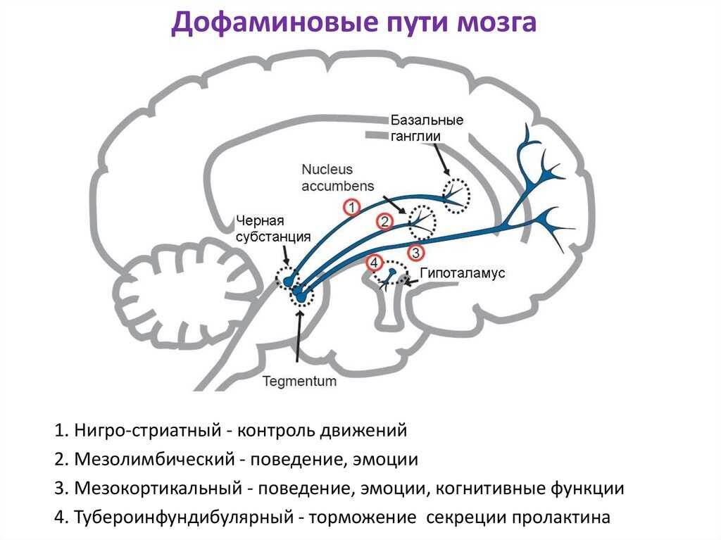 Усиление мезолимбического пути часто ассоциируется с ощущением удовольствия и мотивации. Нарушения в этом пути могут быть связаны с различными психическими расстройствами, такими как шизофрения, наркомания и депрессия.