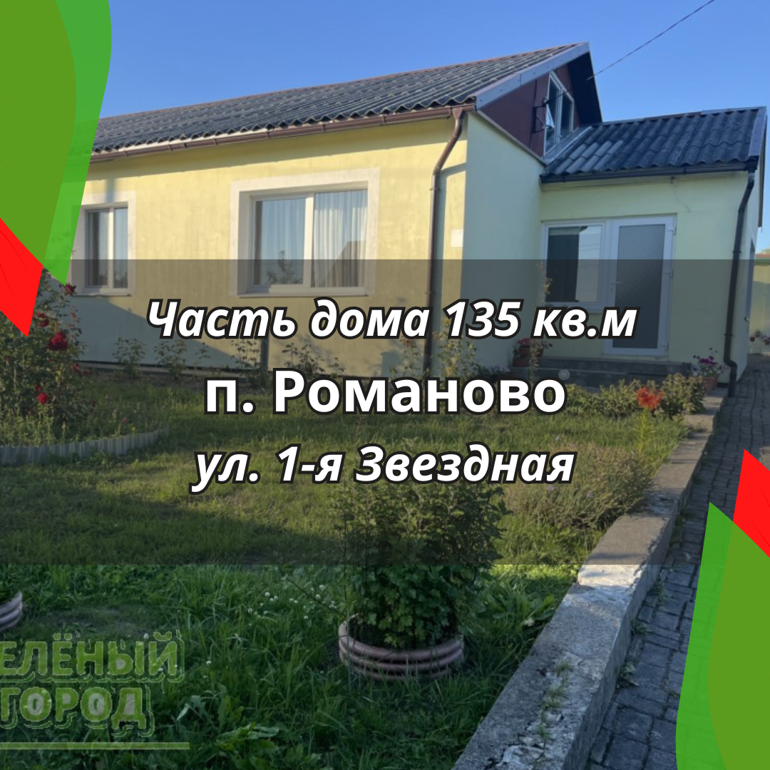 Продаётся изолированная часть дома с отдельным входом, в посёлке Романово, ул. 1-я Звездная. Площадь продаваемой части – 84 кв. м. Подвал – 10 кв.м 3 жилых комнаты Кухня состоит из 2-х комнат столовой 10,6 кв.м и самой кухни 9,4 кв.м. В одной из комнат есть камин на дровах. Земельный участок –10 соток в личном пользовании, 4 сотки в собственности и 6 соток в аренде на 49 лет. Во дворе есть подсобные помещения и гараж на 2 машины. Все коммуникации центральные поселковые: электричество, центральное водоснабжение, канализация, газ. Отопление и горячая вода от 2-х контурного газового котла. Ухоженная и огороженная территория с зелеными насаждениями: лужайки и фруктовые насаждения, теплица. Удобное местоположение и развитая инфраструктура, отличные подъездные пути. Рядом две остановки автобусов, до Калининграда, Зеленоградска, Пионерского, Светлогорска. В посёлке есть детский сад, школа, почта, фельдшерский пункт, магазины. Прекрасный дом для проживания! Стоимость объекта 10 950 000 рублей