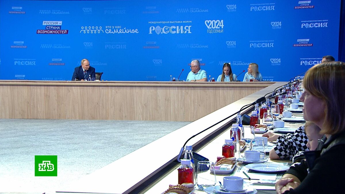 [ Смотреть видео на сайте НТВ ] Новые меры поддержки семей с детьми обсуждали сегодня в Москве на встрече Владимира Путина с финалистами конкурса «Это у нас семейное». Президент обратил внимание на новый законопроект о семейной налоговой выплате, который рассматривается сейчас Госдумой. Речь идет о ежегодной выплате родителям, имеющим двух и более детей. И сегодня названы имена победителей самого массового семейного конкурса, который охватил без преувеличения всю страну. Темы, прозвучавшие за этим большим «семейным» столом, выходили далеко за рамки одного только конкурса. К тому же, глава государства объявил нынешний год в России годом семьи, а как раз сегодня, в день завершения финала масштабного проекта, объединившего команды из всех регионов страны, отмечается День семьи, любви и верности. Так что, когда как не сегодня поговорить о самом важном, что есть в жизни каждого россиянина. Следили за прямой трансляцией этой беседы и все три сотни финалистов конкурса в подмосковном Сенеже. В