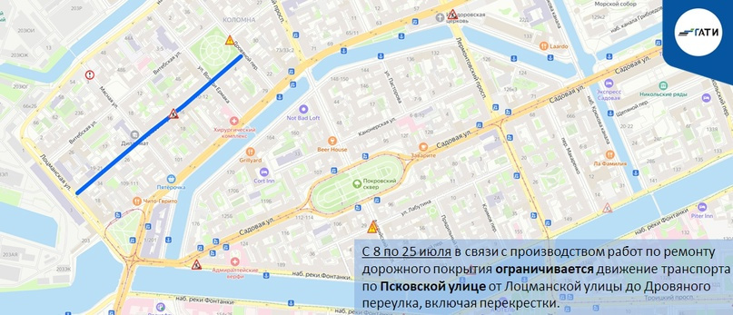 Работы на сетях, ремонт дорог и модернизация светофора с 8 и 10 июля добавят ограничений для водителей в Центральном, Адмиралтейском и Кировском районах Петербурга. Об этом предупреждает Государственная административно-техническая инспекция. С 8 по 25 июля ограничено движение транспорта по Псковской улице от Лоцманской улицы до Дровяного переулка, включая перекрестки. Там ремонтируют дорожное покрытие. С 10 по 17 июля по ночам, с десяти часов вечера до шести утра, для реконструкции кабельной сети ограничат проезд по Вознесенскому проспекту у пересечения с проспектом Римского-Корсакова. С 10 по 12 июля из-за ремонта дороги закроют проезд по Лиговскому переулку у Лиговского проспекта. Объехать его можно будет по Кузнечному переулку, улице Марата, Колокольной улице, Невскому проспекту, Разъезжей и Коломенской улицам, Лиговскому проспекту, улице Некрасова, Суворовскому проспекту, улицам Маяковского и Жуковского, Греческому проспекту, 2-й Советской улице и улице Константина Заслонова. Напом