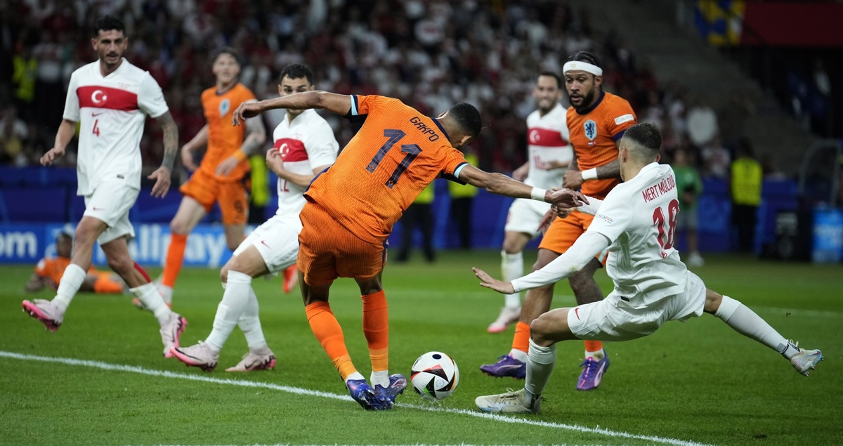 Когда я только узнал, что Голландия и Турция сойдутся между собой в четвертьфинале, то мне сразу показалось, что для "оранжевых" матч если будет не лёгкой прогулкой, то по крайней мере победить они должны достаточно уверенно. Но Голландия какая-то волнообразная команда. Групповой этап провела очень средне, набрав только четыре очка, но игра 1/8 финала с Румынией уже настраивала на позитивный лад. Там оранжевые победили крупно, и не использовали при этом кучу моментов. Реализация - вот самый главный фактор, над которым должен работать Рональд Куман. На мой взгляд, матч Голландия - Турция стал самым интересным и драматичным из всех четвертьфиналов. Голландцы начали игру достаточно бодро, завладели территориальным преимуществом. Уже на третьей минуте Думфрис, находясь в штрафной отпасовал на Депая, который пробил выше ворот. Через несколько минут Коди Какпо пробил в угол с передачи Аке, чуть неточно. Первый момент у турок возник ближе к истечению получаса игры. Арда Гюлер с передачи Салих