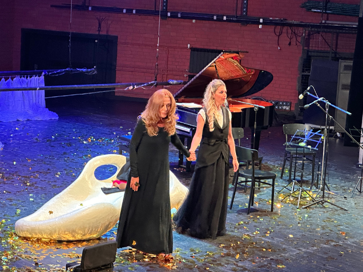 Не могу сказать, что люблю жанр моноспектакля, однако узнав, что в театре Виктюка возродили данную постановку (режиссер «восстановления» - С.Захарин) решила сходить. Хотелось почувствовать «дух мастера», не так много осталось в репертуаре театра несмотренных мной постановок, осуществленных им. Любопытно было посмотреть на актерскую игру Сати Спиваковой и послушать пианистку Басинию Шульман: именно две эти прекрасные женщины и воплощают драму по небольшому произведению Анри Барбюса. Продолжительность спектакля 1 час 15 мин, но текста в «Нежности» - одна страничка, ее можно прочитать за 5 минут. Да, для кого-то это про любовь и нежность, я по сути - не аудитория данной истории, однако посмотрела не без любопытства. Во-первых Спивакова. Она прекрасно выглядит, в ней есть какой-то особый шик и в целом уже неважно, что большую часть времени на сцене она качается на качелях, снимает и надевает туфли на каблуках, двигает шторы, обнимает странную статую, крутит в руках флейту или ра