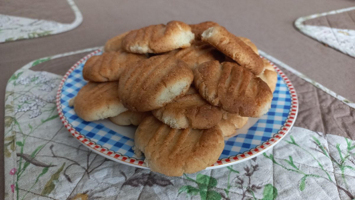 Это очень быстрый рецепт поэтому начнём с того что включим духовку на 180 градусов. И пока она будет разогреваться в миску вобьём 1 яйцо. Смешаем его со 100 граммами сахара и 120 мл подсолнечного масла. Всё хорошо взобьём вилкой в течении 1 минуты. Добавим пол чайной ложки разрыхлителя и пол чайной ложки ванильного сахара. И в конце добавляем 200 грамм муки. Замесим руками мягкое тесто и будем отщипывать от него кусочки и катать шарики. Шарики укладываем на противень и прижимаем их вилкой. так печенье становится оригинальным. Выпекаем печенье до золотистой корочки.