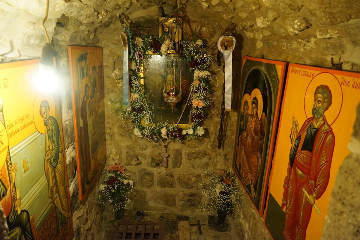 Пещера заточения апостола Петра находится на нижнем уровне трехуровневого монастырского Храма.