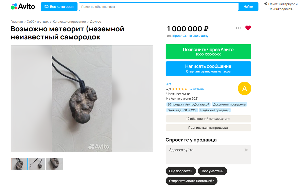 Самое "любопытное" слово в тексте... ВОЗМОЖНО. То есть может да. А может и нет. ( А может - да пошёл ты ! (С) ) Я ничего не гарантирую ( хотя за эти деньги можно было бы хоть справку какую "изобразить", что непосредственно от самого Альфа Центавра летело, и возраст - 300 миллиардов лет. Хотя нет, лучше шестьсот. Или прямо от "Большого взрыва" откололось. ) Но - и того нет. Вы верьте, товарищ, верьте ! И денежку, денежку доставать не забываем !