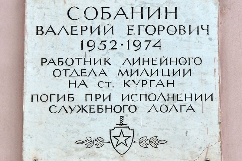 Именем Валерия Собанина названа площадь возле автовокзала 50 лет назад, 9 июля 1974 года, при задержании вооруженного преступника погиб сотрудник линейного отдела милиции станции Курган — старший сержант милиции Валерий Собанин. Именем Валерия Собанина названа площадь возле автовокзала, откуда отправляются автобусы по всей Курганской области, в том числе и в Мокроусовский округ, где 12 декабря 1952 года в маленькой деревне Пермяковка в семье простых сельских тружеников родился Валерий. Егор Иванович и Любовь Михайловна были очень рады седьмому ребенку в их большой и дружной семье. В школьные годы Валерий получал знания в Пермяковской начальной школе, Щигровской 8-летней, а затем в Мокроусовской средней школе. Среднее образование получил в 1970 году. Валерий — член ВЛКСМ с 1967 года. До призыва в мае 1971 года в ряды Советской Армии работал в колхозе «Щигры». Службу проходил в танковых войсках. Вернувшись домой, продолжил работать в родном колхозе. Валерий мечтал о службе в милиции, бер
