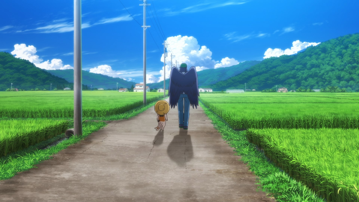 Постеры и описания некоторых аниме иногда создают ложное впечатление. Бывает, начинаешь смотреть очередной гаремник, а он оказывается «Школьными днями». В случае с этим сериалом, впрочем, всё не настолько жёстко — однако вместо простой и душевной повседневности зрители получают достаточно серьёзную фэнтезийную драму. Ещё одно малоизвестное произведение весеннего сезона, которым мне хотелось бы заинтересовать ещё хотя бы несколько человек. Это история о мире, где на Земле — или, по меньшей мере, в Японии — сосуществуют и люди, и мифологические существа, вплоть до различных богов. Многие из них интегрированы в общий социум, дружат, влюбляются и так далее. В тихом городке в горах течёт насыщенная событиями жизнь. Например, у одной семьи старенький кот Бутио эволюционировал в некомату, встал на задние лапы и начал разговаривать. Теперь ему предстоит не только осознать свою новую сущность, но и оформить все бумажки. У юной Му-тян не так давно пропал отец, поэтому она с опаской поглядывает н