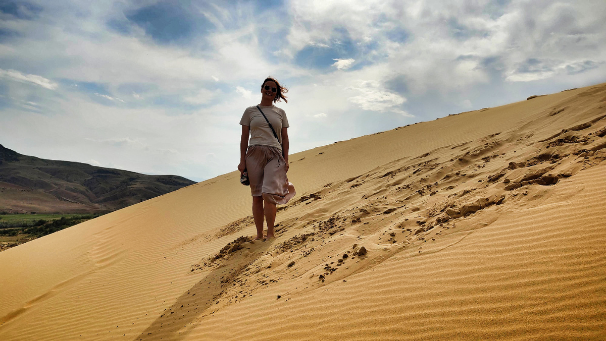 Ощущения невероятные! Гигантская песочница. Кусочек самой настоящей пустыни. Ноги тонут в нежнейшем песке. Который, правда, регулярно сечет кожу, когда порывы сильного ветра кидают его в людей.