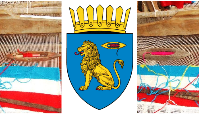 - В чёрном поле серебряный венок плюща обыкновенного (Hedera helix) с золотыми цветками, обрамляющий три, нанизанные на веточку, золотые антропоморфные подвески культуры Прекукутень. В золотой главе щита чёрная голова тура прямо. Щит увенчан золотой сельской короной".
