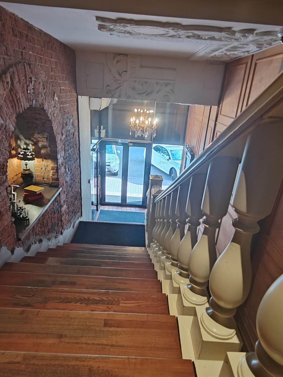 "В интерьере мы старались передать атмосферу эпохи, когда остатки аристократической жизни царской России сосуществовали с новым бытом и коммунальными квартирами, — рассказывает управляющий баром Сергей Плескач. — Именно поэтому вы можете наблюдать, например, масляные репродукции картин и советских плакатов на стенах. А под высоким заводским потолком — роскошные люстры".