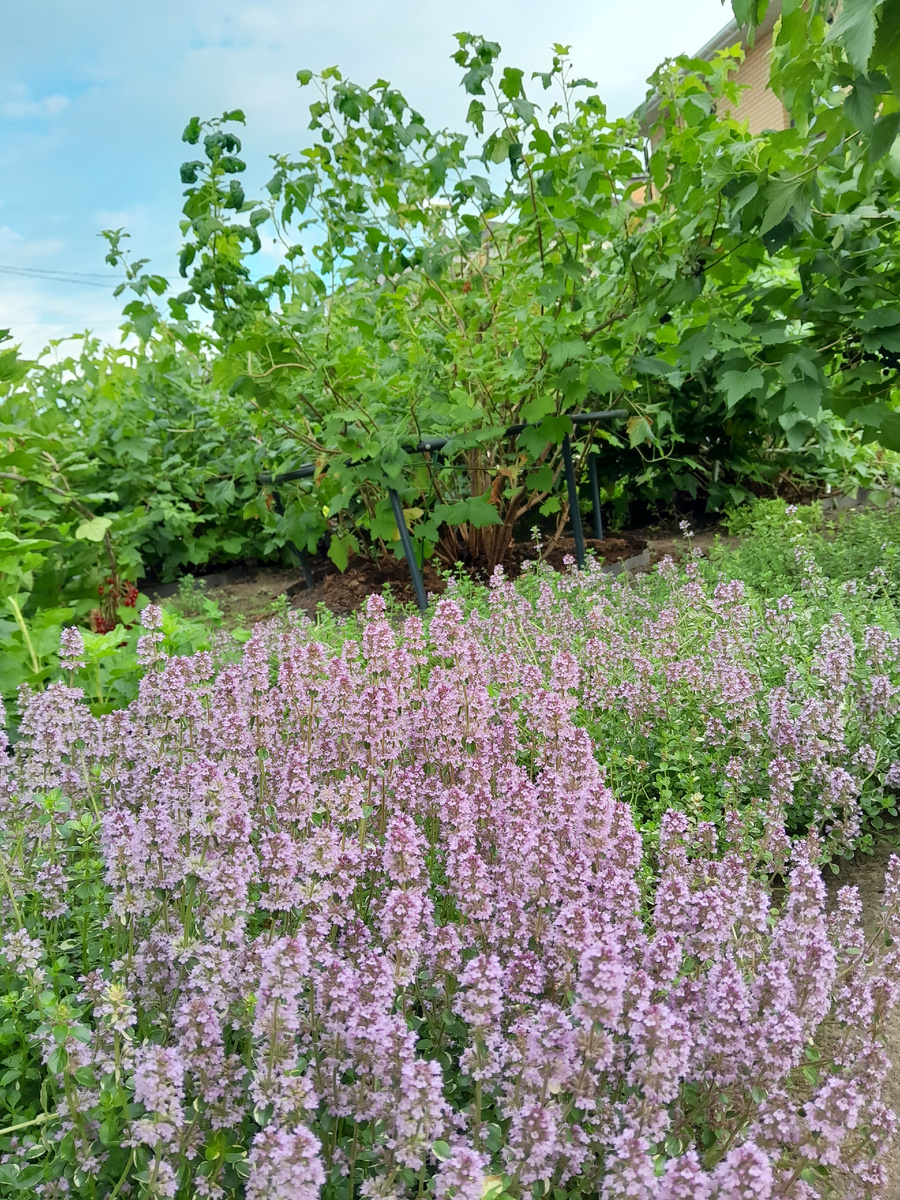Тимьян рассадила вокруг смородины - он как щит к ней не пускает вредителей.