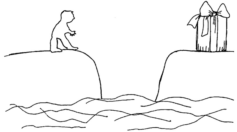 Человек — это вы сами, подарок на другом берегу - это ваша цель, река — это некие препятствия, который вам надо преодолеть на пути к цели. То, как вы это сделаете (то есть то, как вы дополнили рисунок), расскажет о вашей целеустремленности