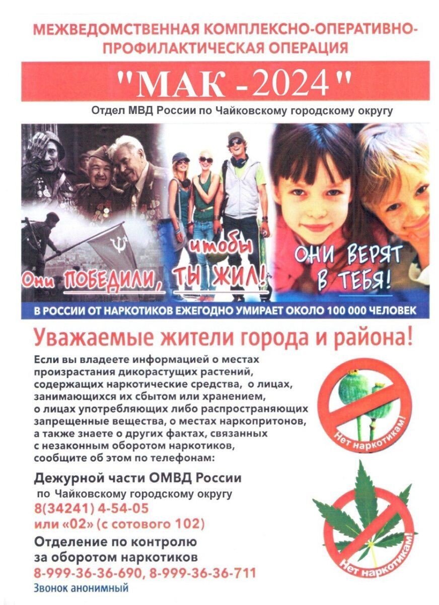 В Чайковском стартует оперативно-профилактической операции «Мак-2024»