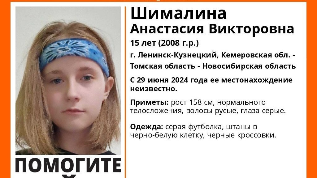 В Кемеровской области пропала 15-летняя Анастасия Шималина. Об этом сообщили в поисковом отряде «ЛизаАлерт» Кузбасс. Подросток пропал 29 июля в городе Ленинск-Кузнецкий. Однако волонтеры предполагают, что она может находится и в других регионах — Томской и Новосибирской областях. В последний раз ее видели одетой в серую футболку и штаны в черно-белую клетку. На ногах у девочки были черные кроссовки. Приметы: рост 158 см, нормального телосложения, волосы русые, глаза карие. Если вам что-либо известно о местонахождении пропавшей, сообщите, пожалуйста, по телефону горячей линии отряда 8-800-700-54-52 (круглосуточно, бесплатно) или по номеру 112. Ранее мы писали о том, что в Новосибирске пропал Виталий Селяков с пакетом. Иван Быкадоров