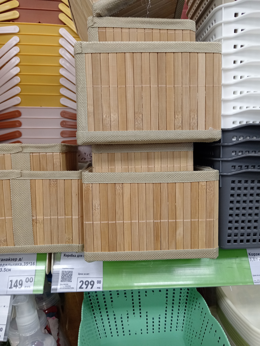 Доброе утро! Сегодня приглашаю вас в магазин Фикс Прайс познакомиться с товарами для бытового использования и организации хранения. Коробка для хранения O`Kitchen. Два варианта размера: 1 вариант – 21х15х14 см, 2 вариант – 24,5х18х12 см. Состав: бамбук, терилен, бумага. Цена: 299 рублей. Коробка "Кристалл" Home Time выполнена из прозрачного цветного материала и украшена рельефным рисунком. С двумя ручками. Размер: 20х14х8 см. Состав: ПЭТ. Цена: 124 рубля. Корзинка Home Time. Размер: 22х16х11 см. Состав: полипропилен. Цена: 59 рублей. Миска квадратная с декором 2 литра (79 рублей) и 4 литра (116 рублей). Состав: полипропилен. Банка O'Kitchen с рифлёной поверхностью подойдёт для хранения сыпучих и жидких продуктов. Выполнена из прозрачного стекла, с пробковой крышкой. Размер: 10х21 см. Объём: 1,2 л. Цена: 249 рублей. Набор банок на подставке O`Kitchen. В комплекте 3 банки и подставка, позволяющая компактно их разместить на столе или в шкафу. Объём банок: 370 мл – 1 шт., 180 мл – 2 шт.
